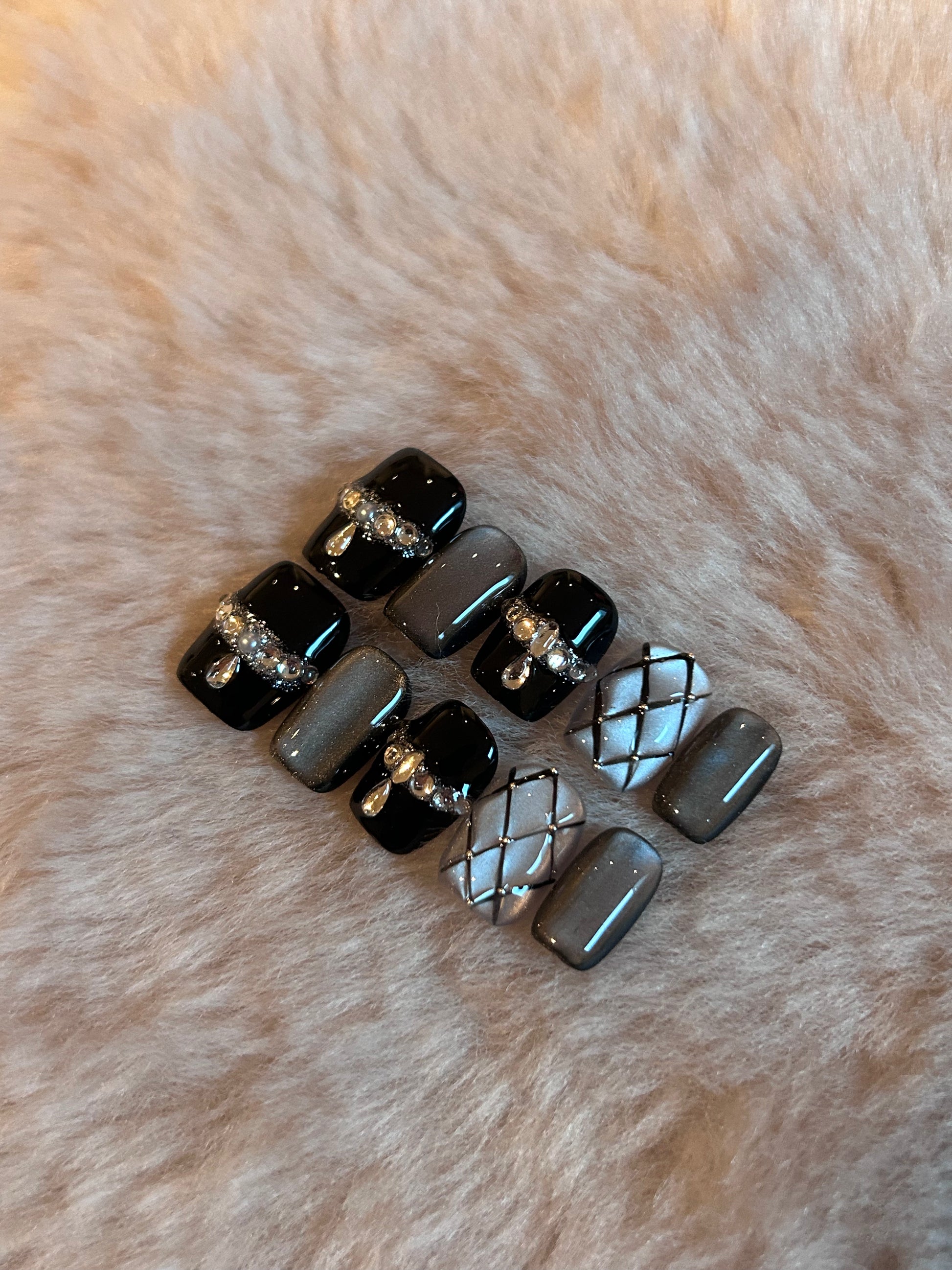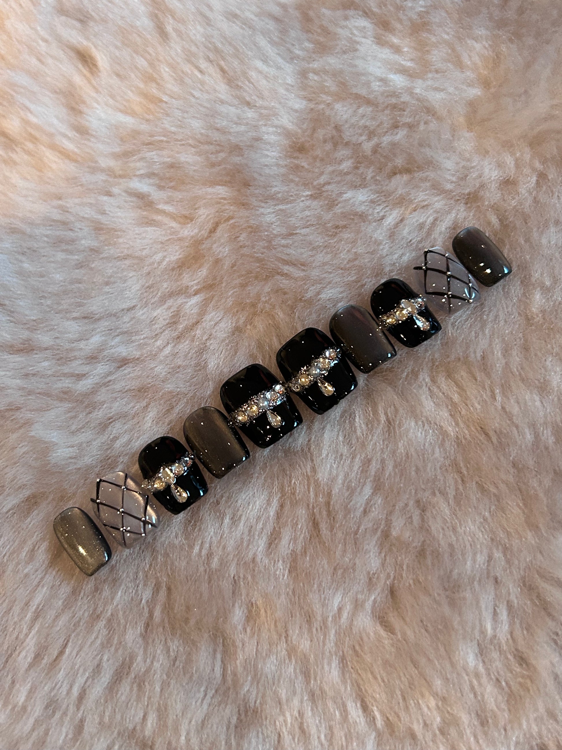 A refined blend of deep black cat-eye shimmer and subtle crystal accents, Midnight Gem brings understated glamour to your look. The magnetic finish shifts with the light, while the touch of bling adds just enough sparkle to stand out. Effortlessly elegant, this set is perfect for evenings out or anytime you want a polished, elevated finish- no salon required.