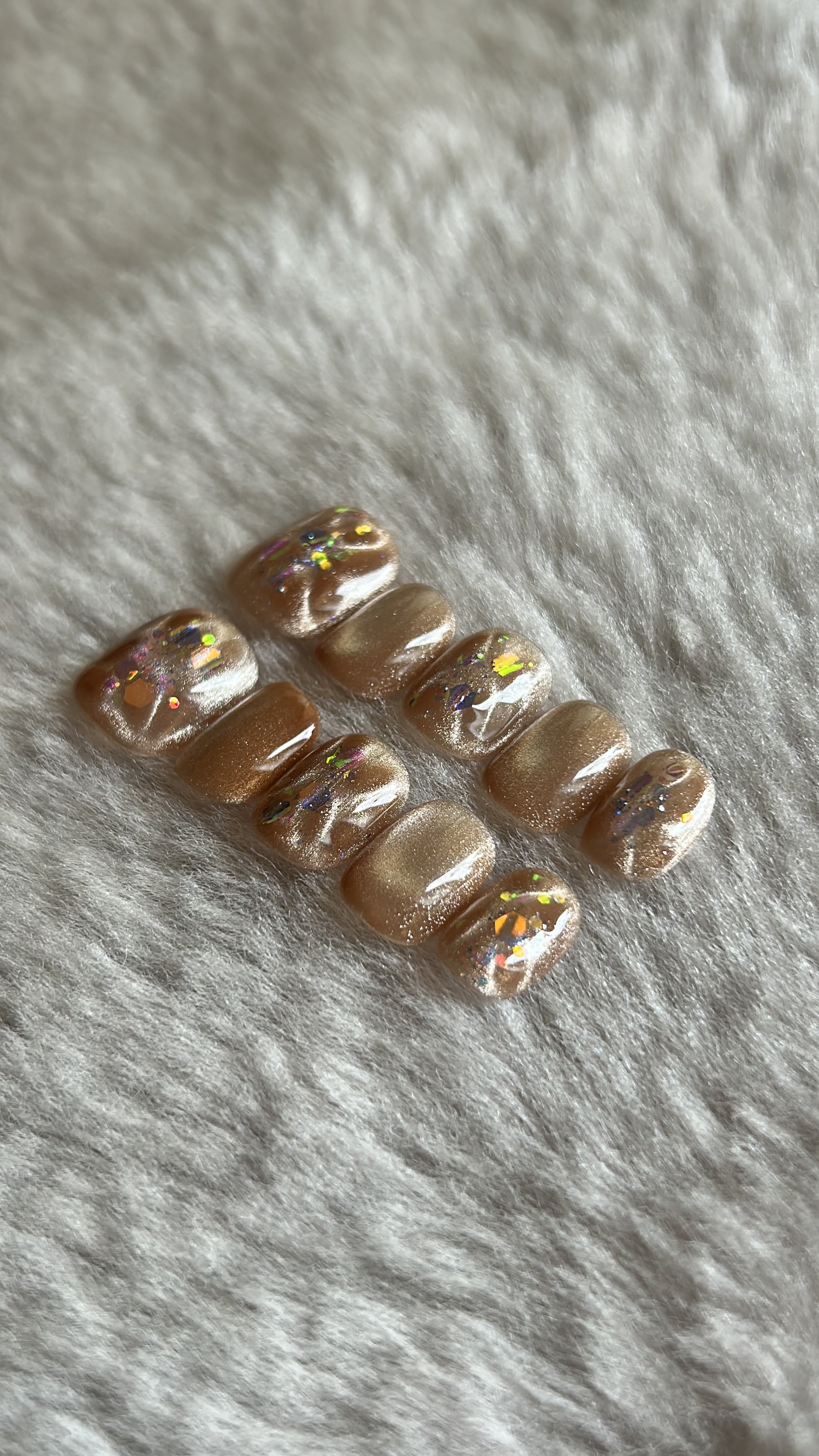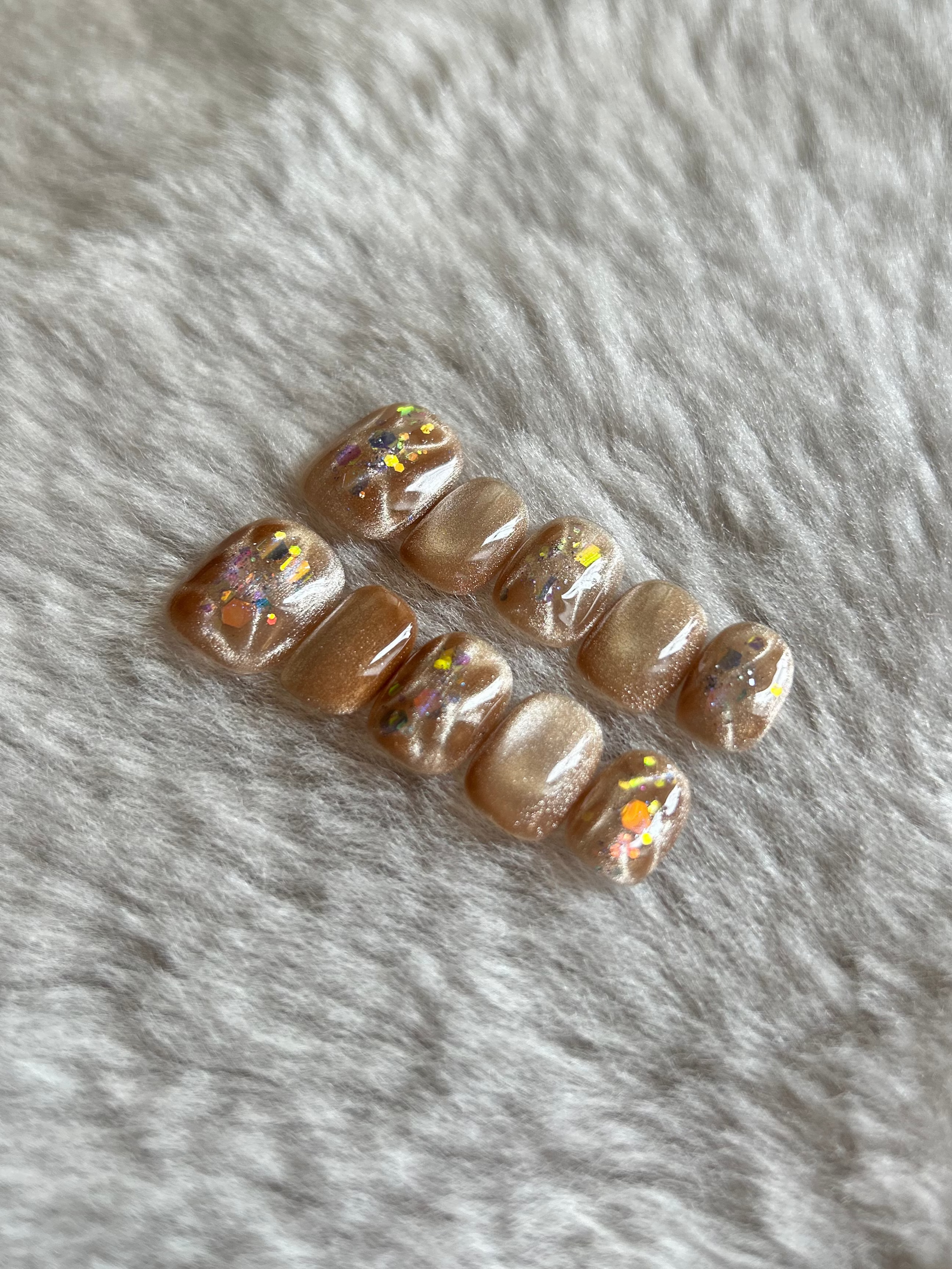 A warm blend of saffron orange and reflective chrome, Sunlit Saffron gives your nails a clean, polished glow. The smooth, glossy finish catches the light without being overpowering, making it a versatile choice for both everyday wear, summer and more dressed-up moments. It’s bold, simple, and easy to style.